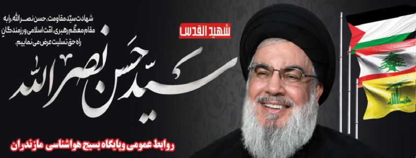 اینجانب ضمن تبریک و تسلیت شهادت این مبارز مقاوم کم نظیر به محضر حضرت ولی عصر(روحی فداه)، رهبر معظم انقلاب اسلامی(مد ظله العالی)، خانواده معزز شهید نصر الله و همه مبارزان و مجاهدان فی سبیل الله در رزمگاه مقاومت در برابر صهیونیست ها، از درگاه ایزد متعال برای آن شهید عزیز علو درجات و حسن فرجام و پیروزی نهایی برای پویندگان این مسیر روشن خواستارم.