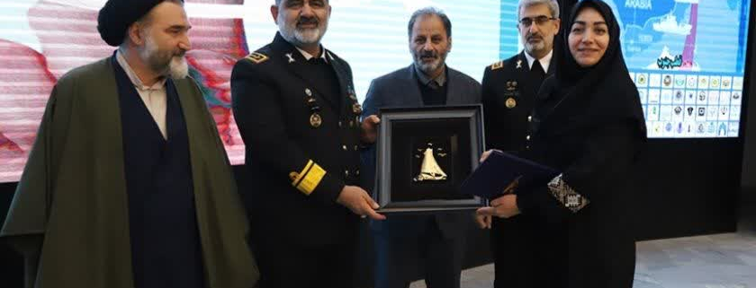 از سرکار خانم دکتر تاجبخش معاون وزیر راه و شهرسازی و رئیس سازمان هواشناسی کشورجهت ارائه مقاله با موضوع ” اثرات متقابل تغییر اقلیم و جنوبگان” به عنوان مقاله برتر انتخاب و توسط امیر دریادار شهرام ایرانی فرمانده نیروی دریایی ارتش با اهداء لوح و هدیه تقدیر به عمل آمد.