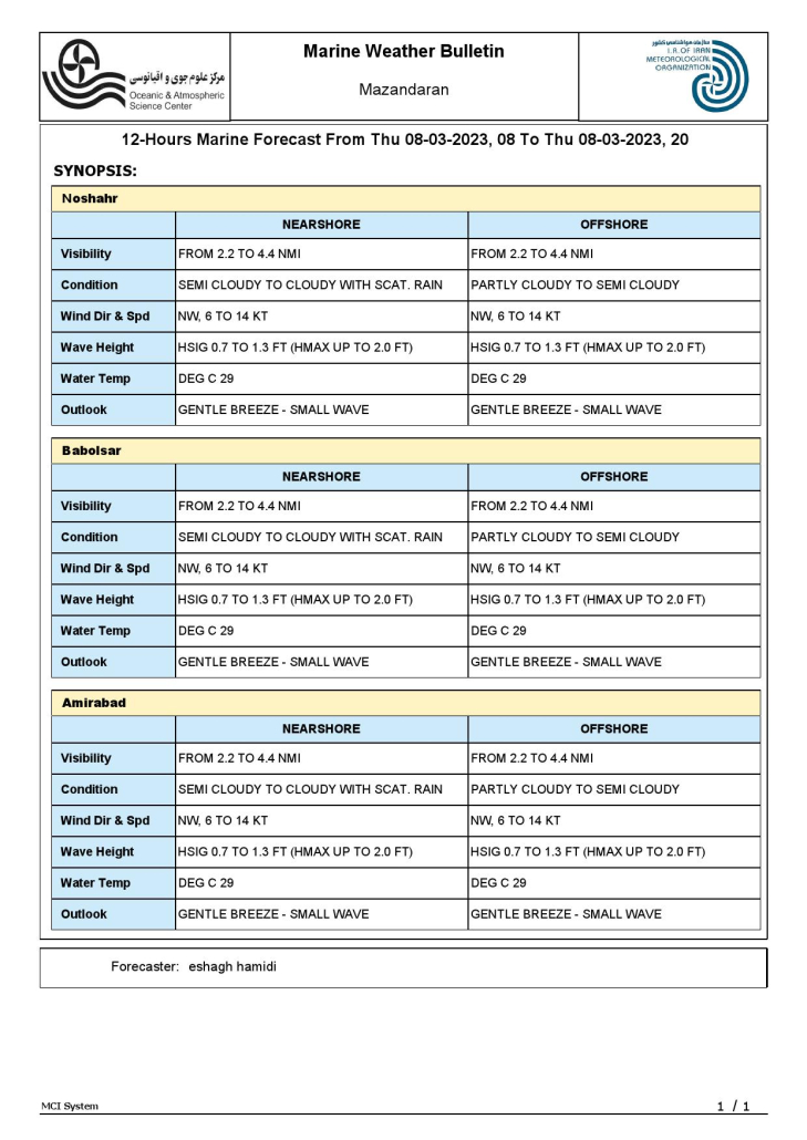 پیش بینی هواشناسی دریایی و اقیانوس شناسی