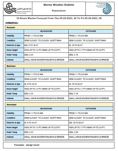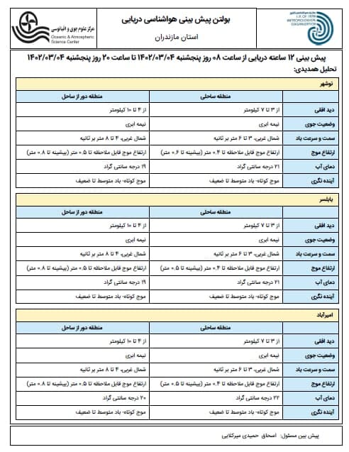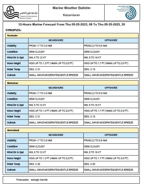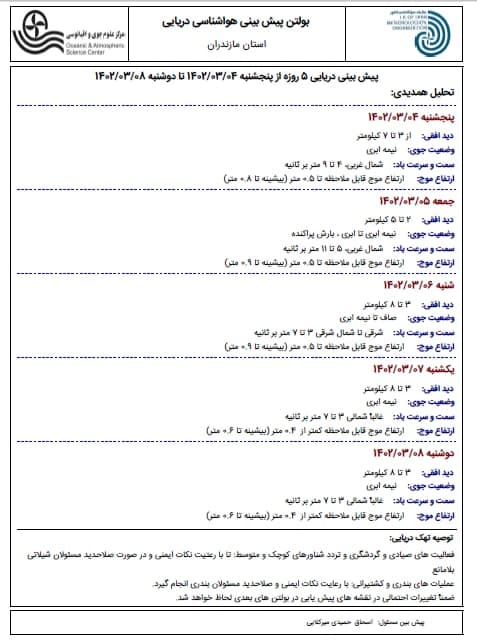 پیش بینی هواشناسی دریایی-۰۴ خرداد