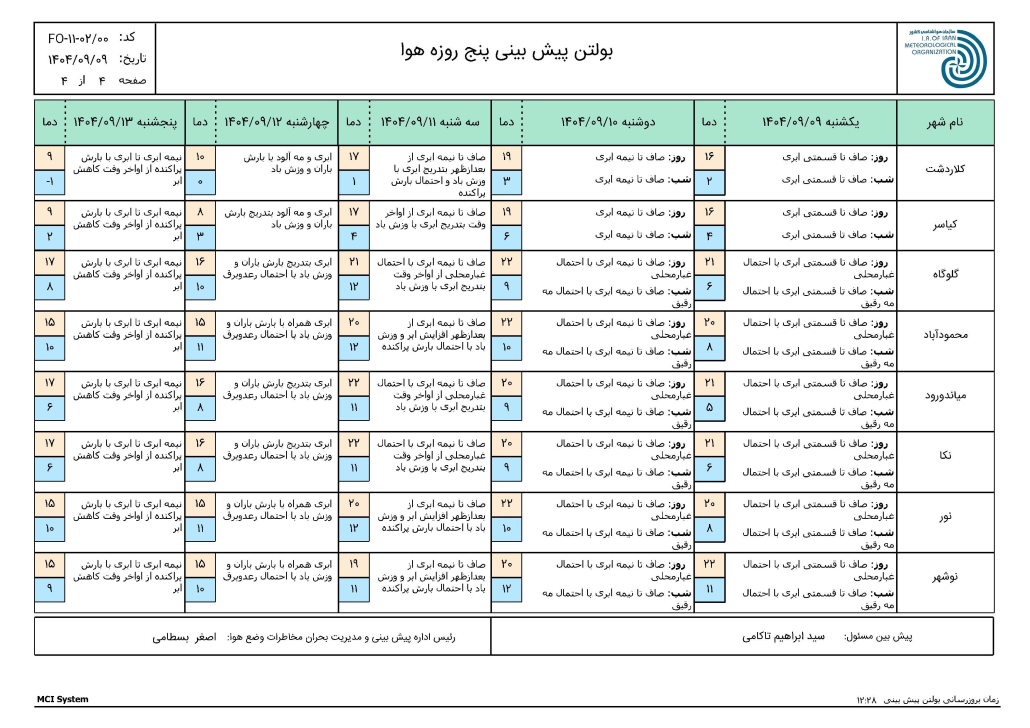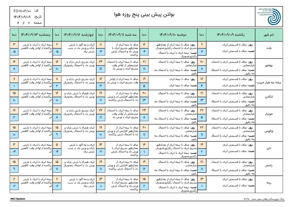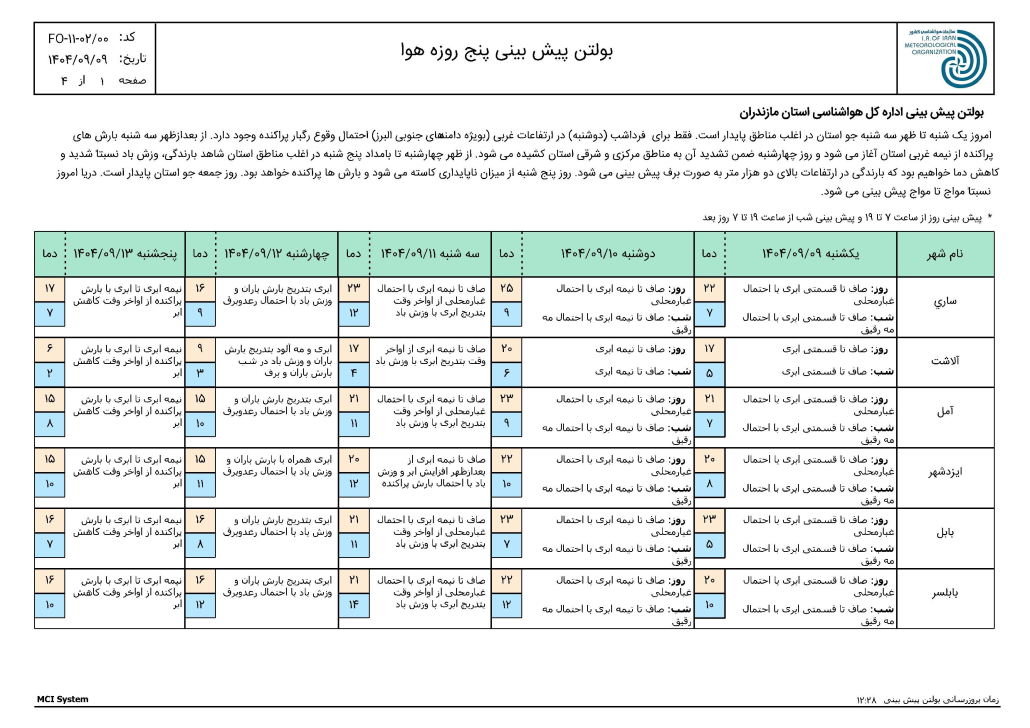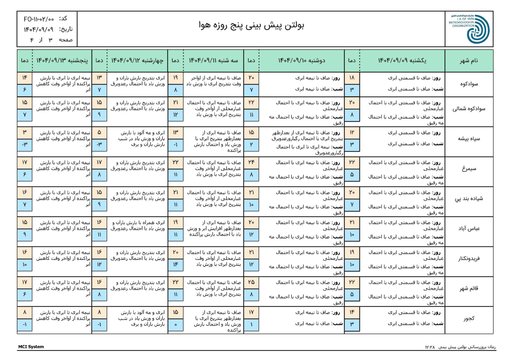 - پیش بینی ۵ روزه استان مازندران با کمینه و بیشینه دما
