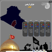 بولتن اربعین حسینی چشم انداز ۱۰ روزه ای از اوضاع جوی چهار شهر زیارتی «نجف، کربلا، کاظمین و سامرا» و همچنین شش شهر مرزی ایران با عراق یعنی «تمرچین (پیرانشهر)، باشماق، خسروی (قصر شیرین)، مهران، چذابه و شلمچه» ارائه می کند.