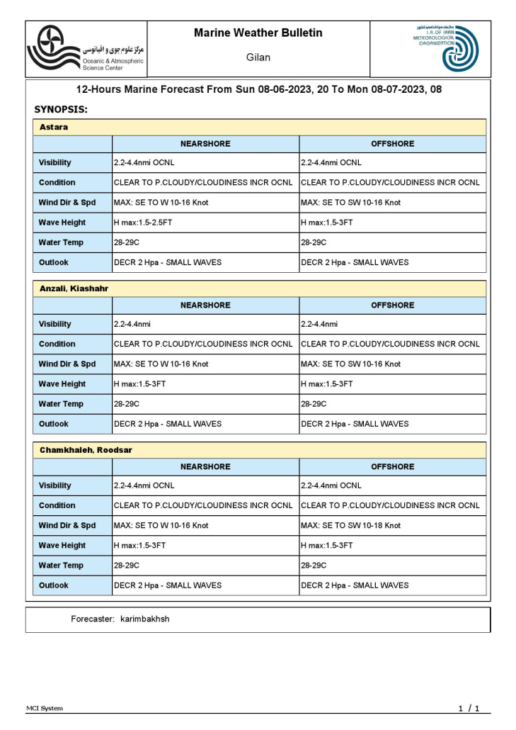 مسئول روابط عمومی هواشناسی مازندران گفت: سازمان هواشناسی کشور چند محصول هواشناسی به ویژه بولتن پیش بینی وضع هوای ۱۰ روز آینده شهرهای مرزی و زیارتی ایران و عراق برای ایام اربعین حسینی تولید و عرضه کرد.