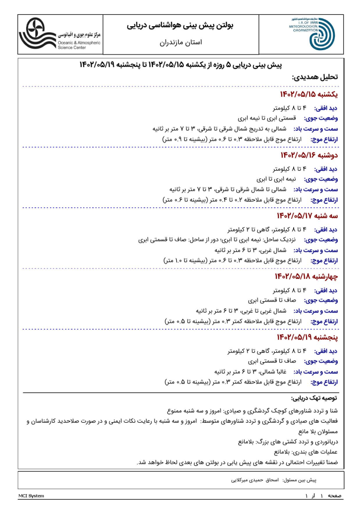 به گزارش مسئول روابط عمومی هواشناسی مازندران، این محصول به صورت روزانه تولید و از طریق پورتال اطلاع رسانی و صفحات سازمان هواشناسی کشور در شبکه های مجازی منتشر می شود.